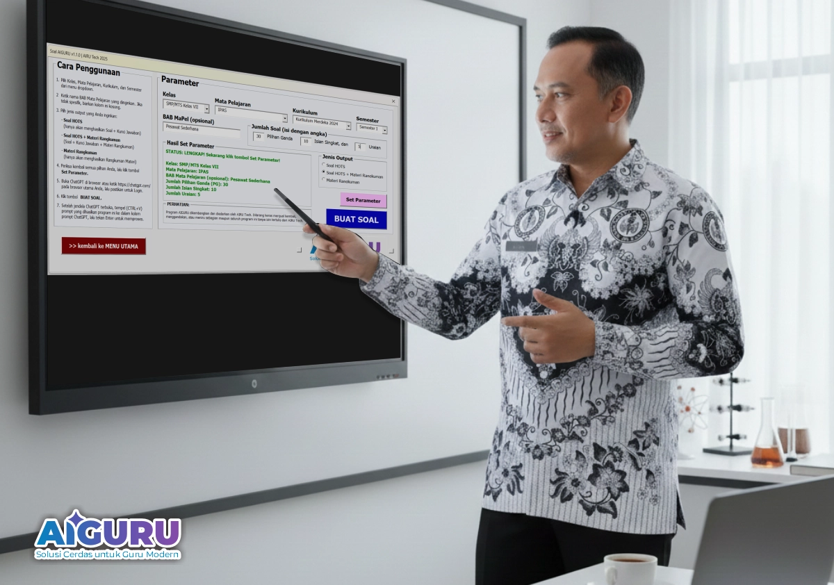 Jangan biarkan tugas manual ini terus menggerogoti energi Anda. Manfaatkan kecanggihan AIGURU sebagai pembuat soal cepat untuk memastikan evaluasi Anda selalu siap, cepat, dan akurat.