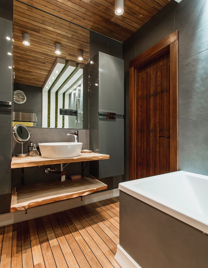 3. Tambahkan Sentuhan Kayu pada Lantai Kamar Mandi